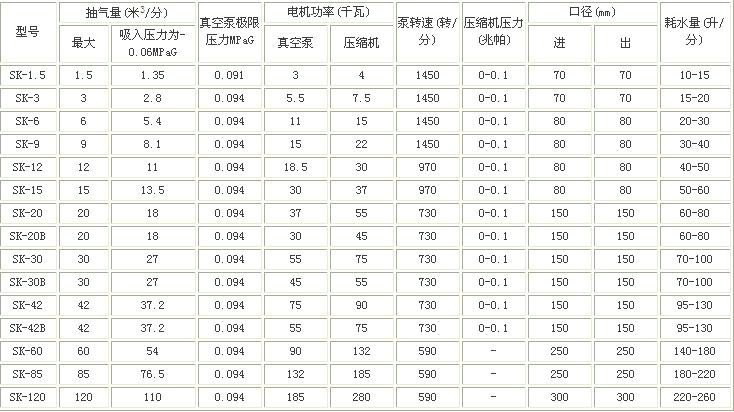 SK系列水环式真空泵及压缩机是用来抽吸或压缩空气和其它无腐蚀性、不溶于水、不含固体颗粒的气体,以便在密闭容器中形成真空和压力,吸入气体中允许混有少量液体。